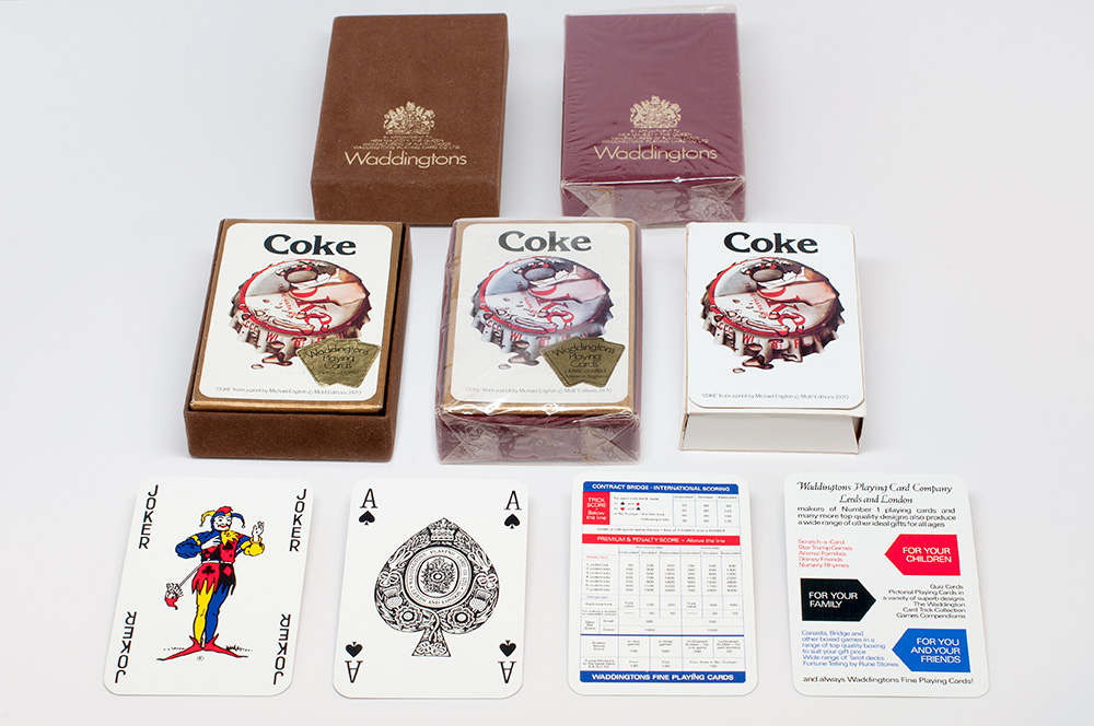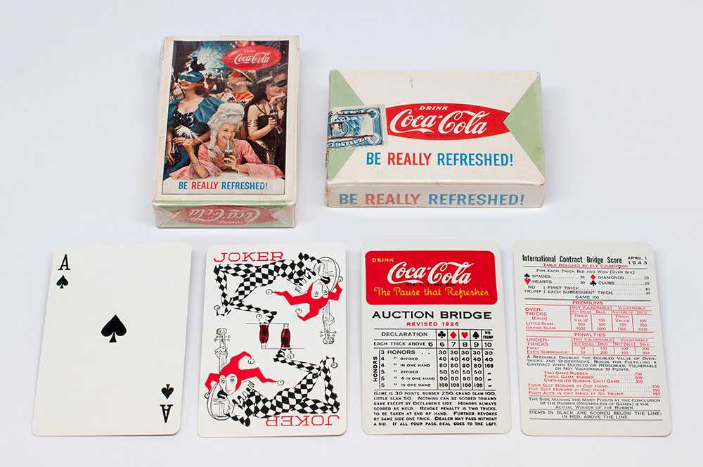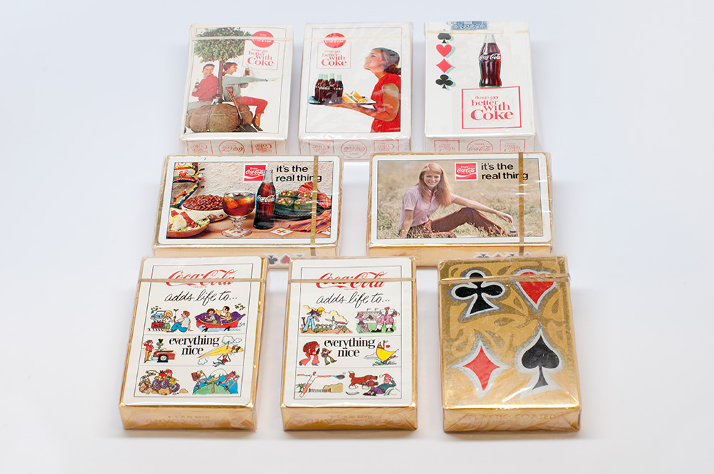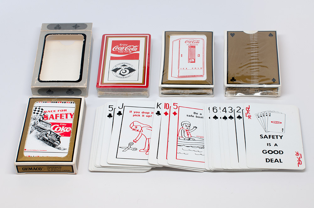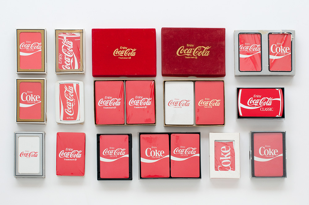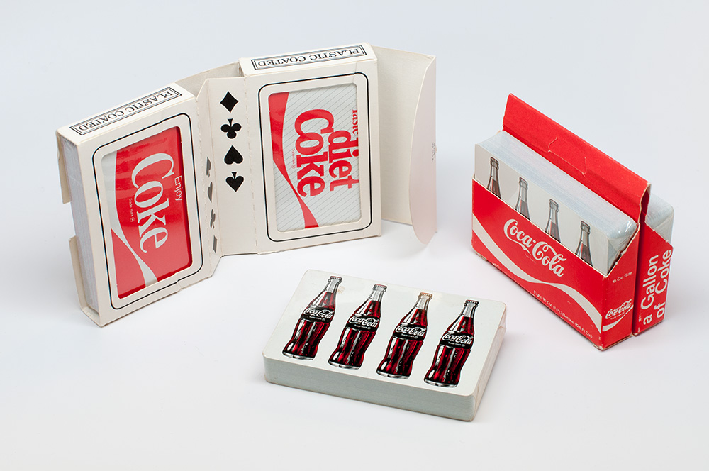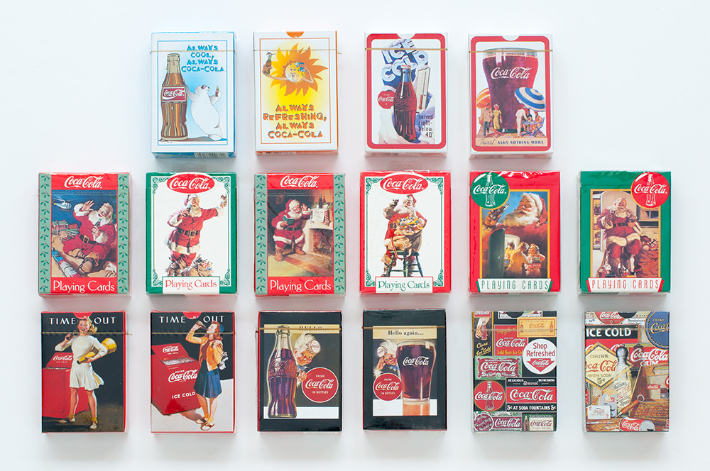 View in GalleryOver the last three or four decades the Company began to intentionally produce decks either to be sold as novelty items or to collectors. These are available in large quantities and in my opinion have no value. As you can see some of these decks reproduce older, original advertising images. Some are associated with other companies, for example, the Southwest and Delta airlines decks. Also included are the large variety of “Enjoy” and “wave” decks, as well as a number with a can image on the cards. These date from the 1960s forward and there are many types of boxes, trademark and logo styling and other variations.