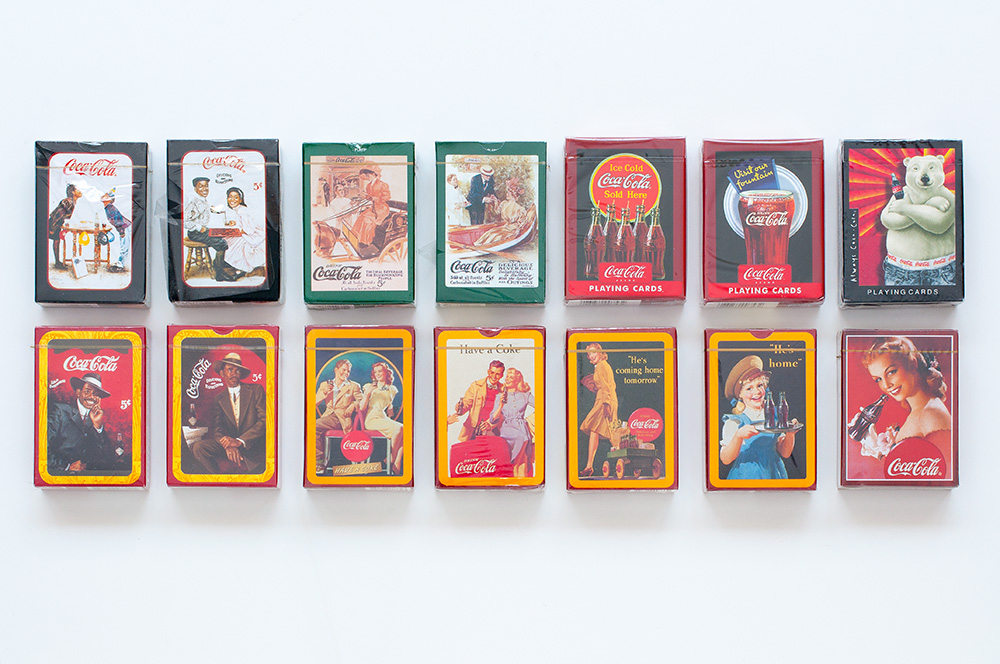 View in GalleryThere are a variety of decks of Atlanta Georgia that have the Coca-Cola building on one or more of the cards. A number of those decks are shown here. There are also decks of New York City with a Coca-Cola card, also pictured. And there was a set of single and double decks produced in conjunction with the New York City World’s Fair in 1964, with one card having a Coca-Cola theme.